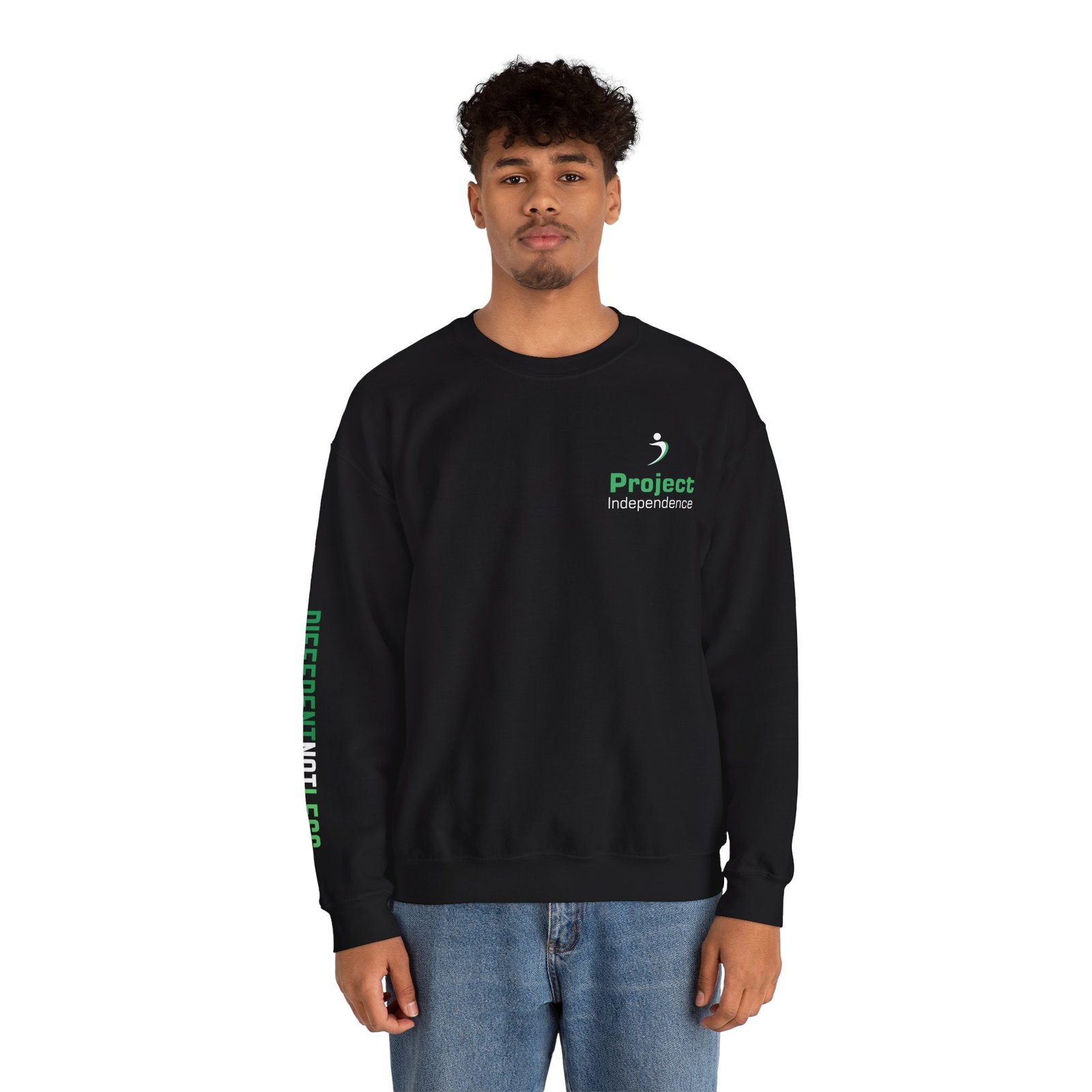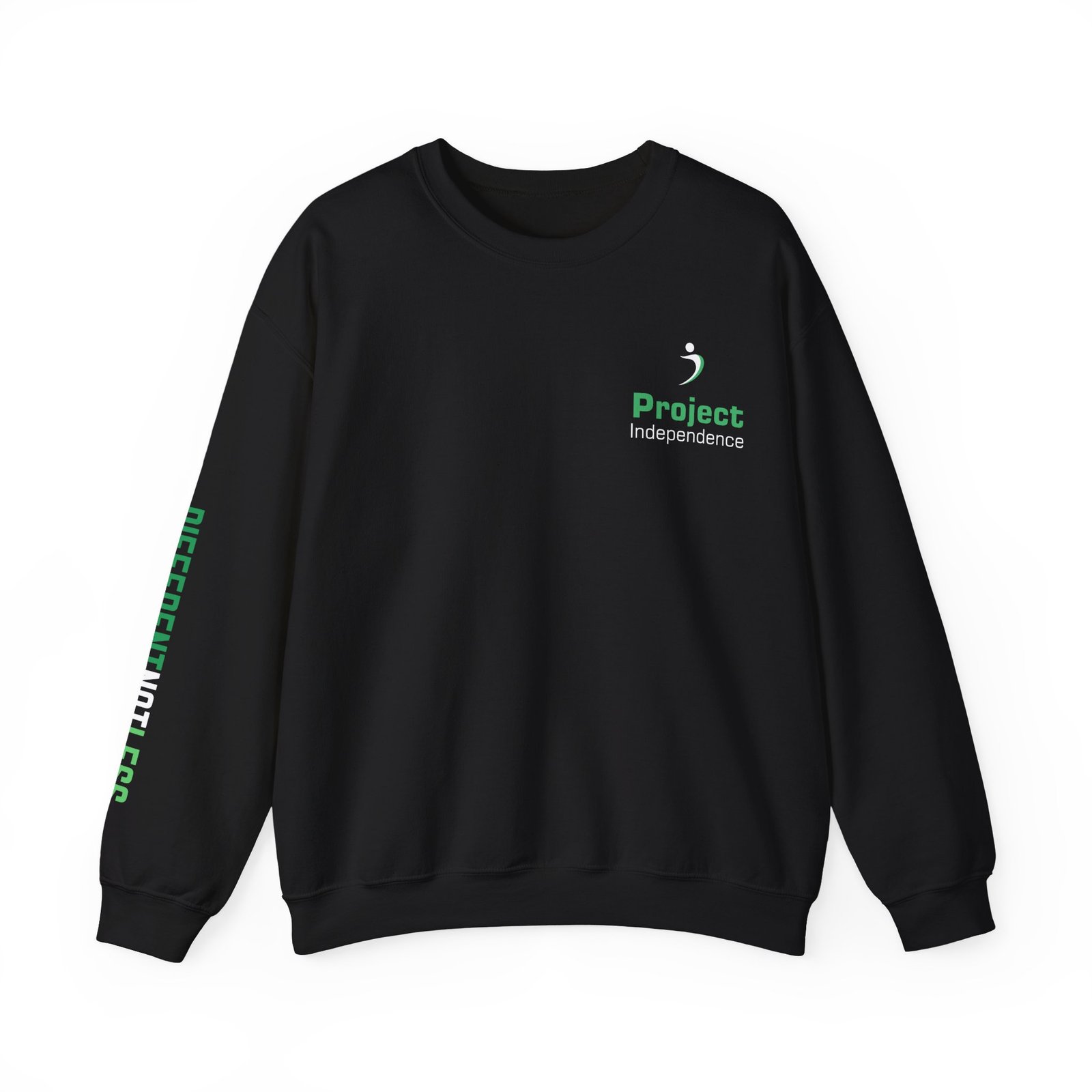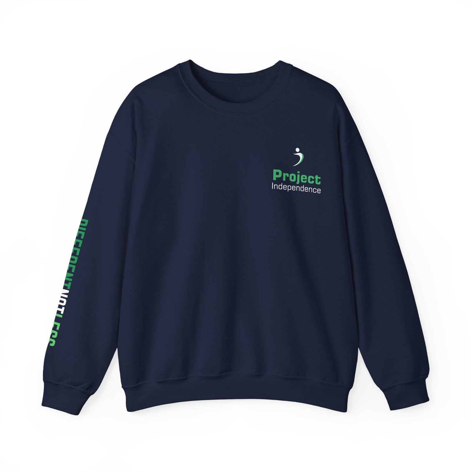 Show your PI pride in style with this cozy Gildan 18000 crewneck sweatshirt featuring the Project Independence logo embroidered on the left chest and the inspiring message “Different Not Less” printed down the right sleeve. It’s soft, durable, and perfect for cooler days—whether you’re at a program site, out in the community, or just staying comfy at home.